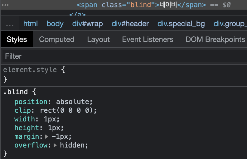 ๋ค์ด๋ฒ์์๋ ์ฃผ๋ก blind๋ผ๋ ํด๋์ค๋ช